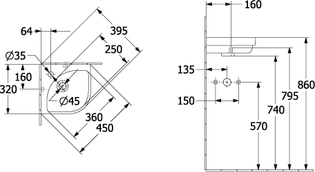 Villeroy & Boch Subway 3.0 hoekfontein 32cm 1 kraangat zonder overloop met ceramicplus wit