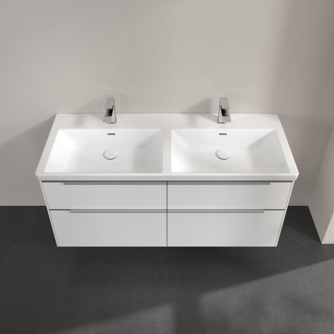 Villeroy & Boch Subway 3.0 wastafelonderkast 130x55x45cm met aluminium glanzende greep 2 sifonuitsparingen links en rechts spaanplaat Pure White
