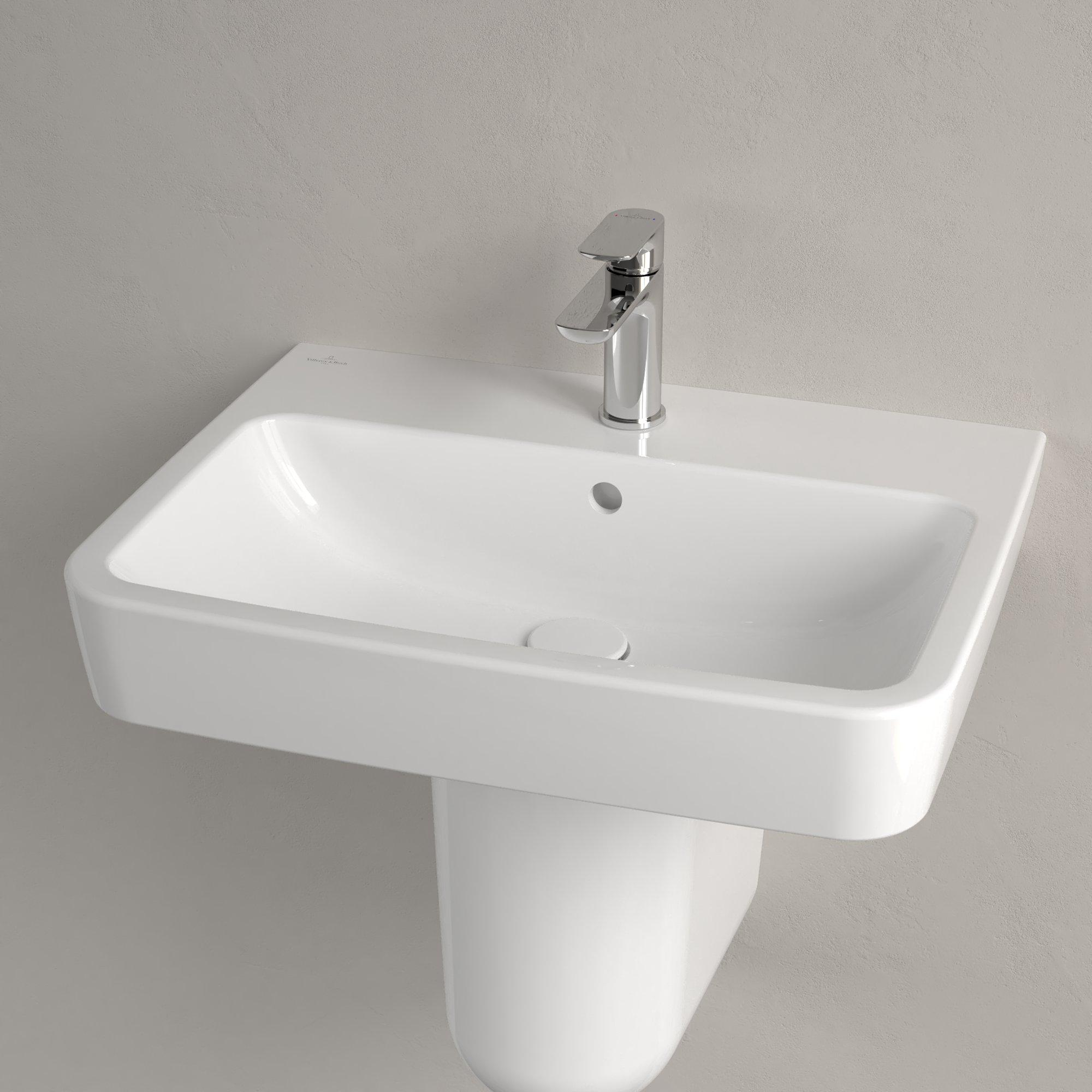 Villeroy & Boch O.novo wastafel 60x46x17.5cm Rechthoek 1 kraangat met overloopgat Wit Alpin glans Ceramic+ SW702126