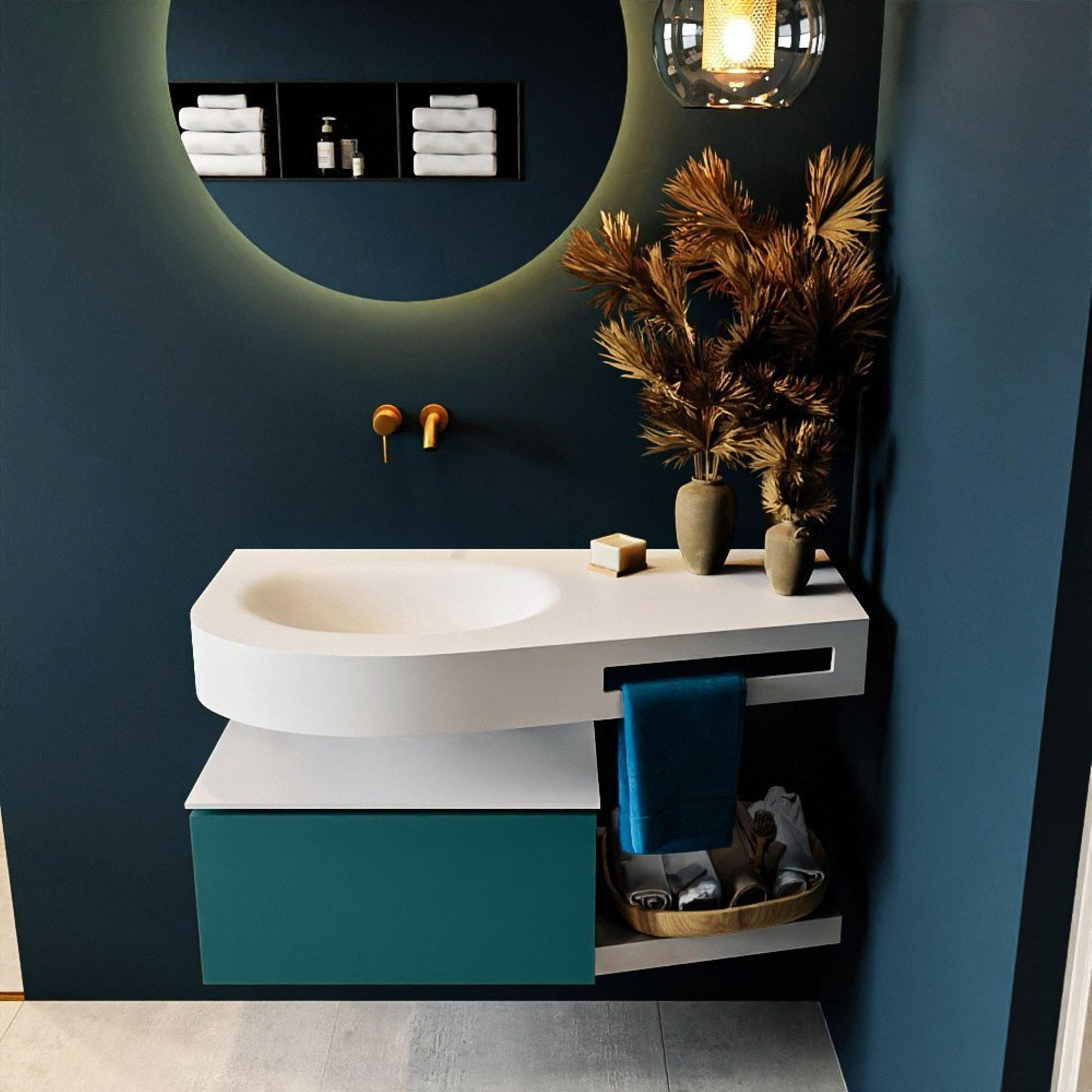 MONDIAZ RIVA Badkamermeubelset - 100x50x30cm - 1 lade - MDF Smag mat - push to open - 0 kraangaten - wasbak links - solid surface talc