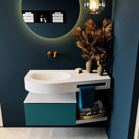 Naast zijn esthetische waarde is de MONDIAZ RIVA Badkamermeubelset ook zeer functioneel. Met een ruime lade en push to open mechanisme biedt het voldoende opbergruimte voor al je badkamerspullen. De wasbak aan de linkerkant zorgt voor een efficiënte indeling en maakt het dagelijkse gebruik gemakkelijk en comfortabel. Dit meubelset combineert design met functionaliteit op een harmonieuze manier.