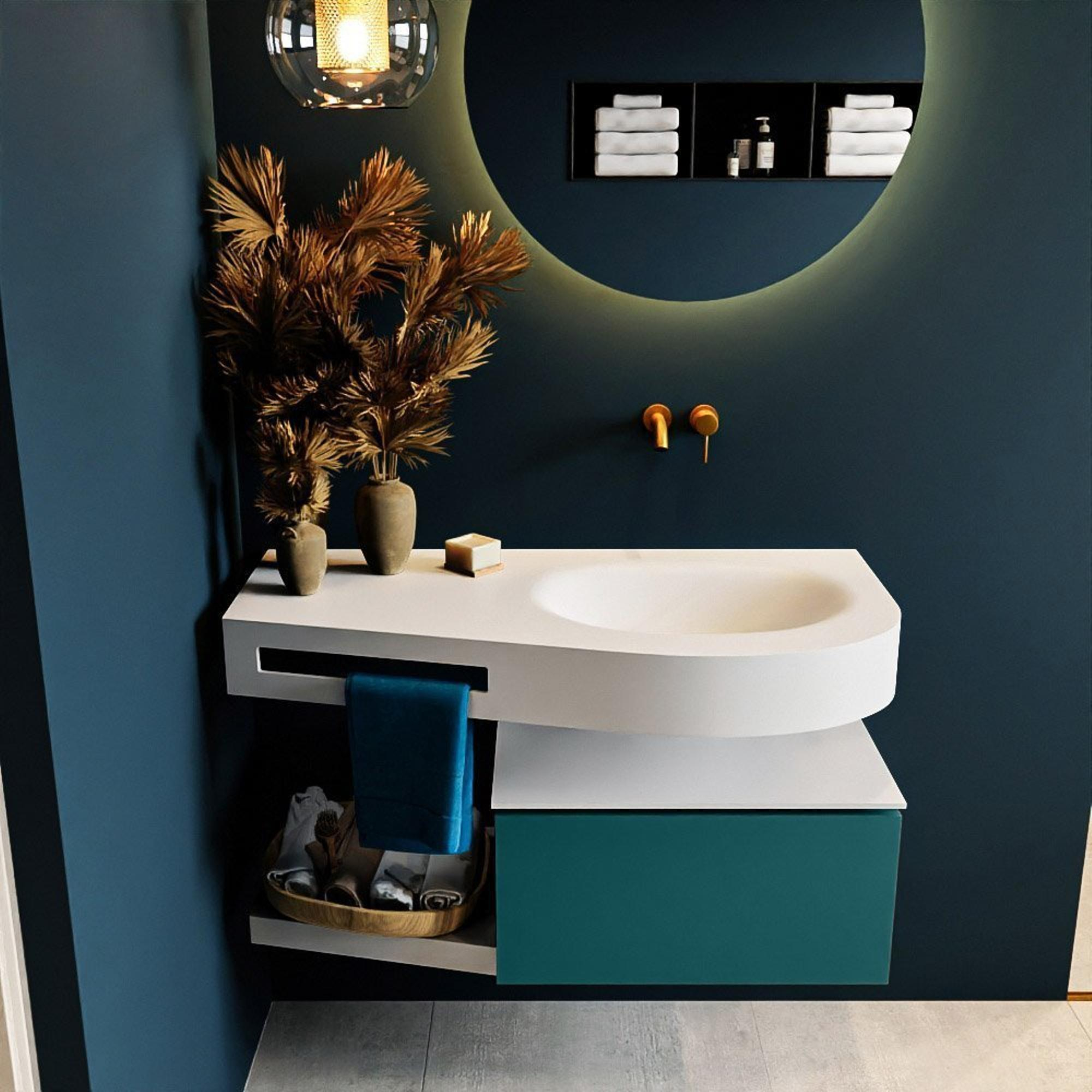 MONDIAZ RIVA Badkamermeubelset - 100x50x30cm - 1 lade - MDF Smag mat - push to open - 0 kraangaten - wasbak rechts - solid surface talc