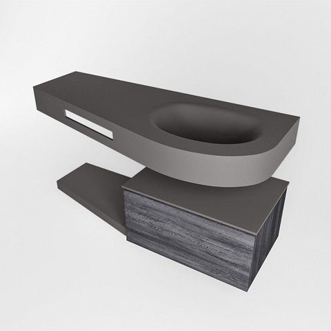 MONDIAZ RIVA Badkamermeubelset - 120x50x30cm - 1 lade - MDF Antracite mat - push to open - 0 kraangaten - wasbak rechts - solid surface darkgrey