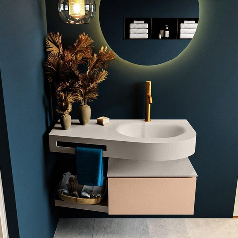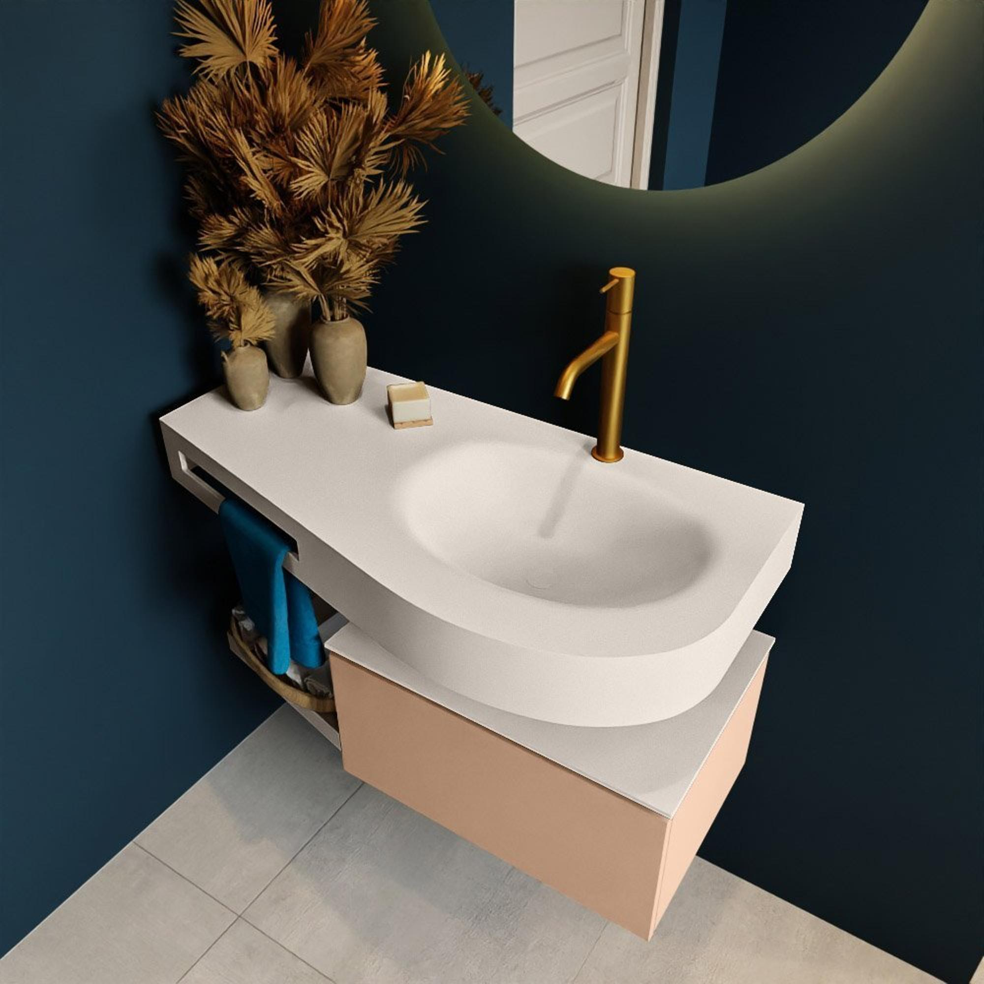 MONDIAZ RIVA Badkamermeubelset - 100x50x30cm - 1 lade - MDF Rosee mat - push to open - 1 kraangat - wasbak rechts - solid surface linen