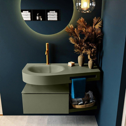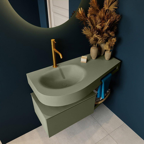MONDIAZ RIVA Badkamermeubelset - 100x50x30cm - 1 lade - MDF Army mat - push to open - 1 kraangat - wasbak links - solid surface army
