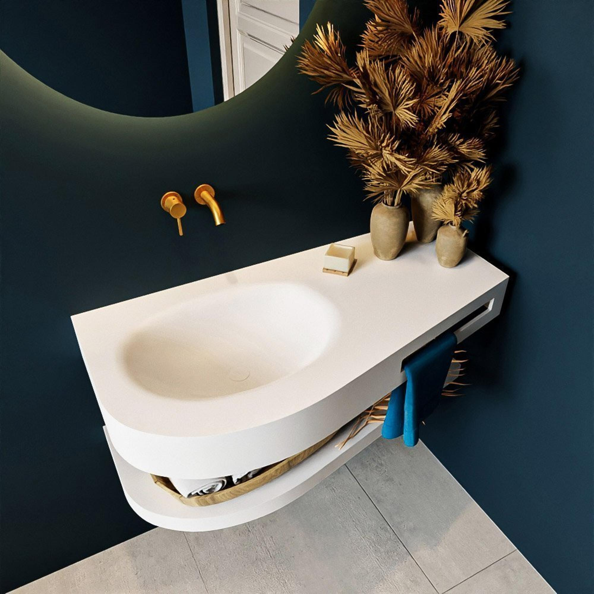 MONDIAZ RIVA Badkamermeubelset - 100x50x5.8cm - 0 lades - Talc mat - 0 kraangaten - wasbak links - solid surface talc