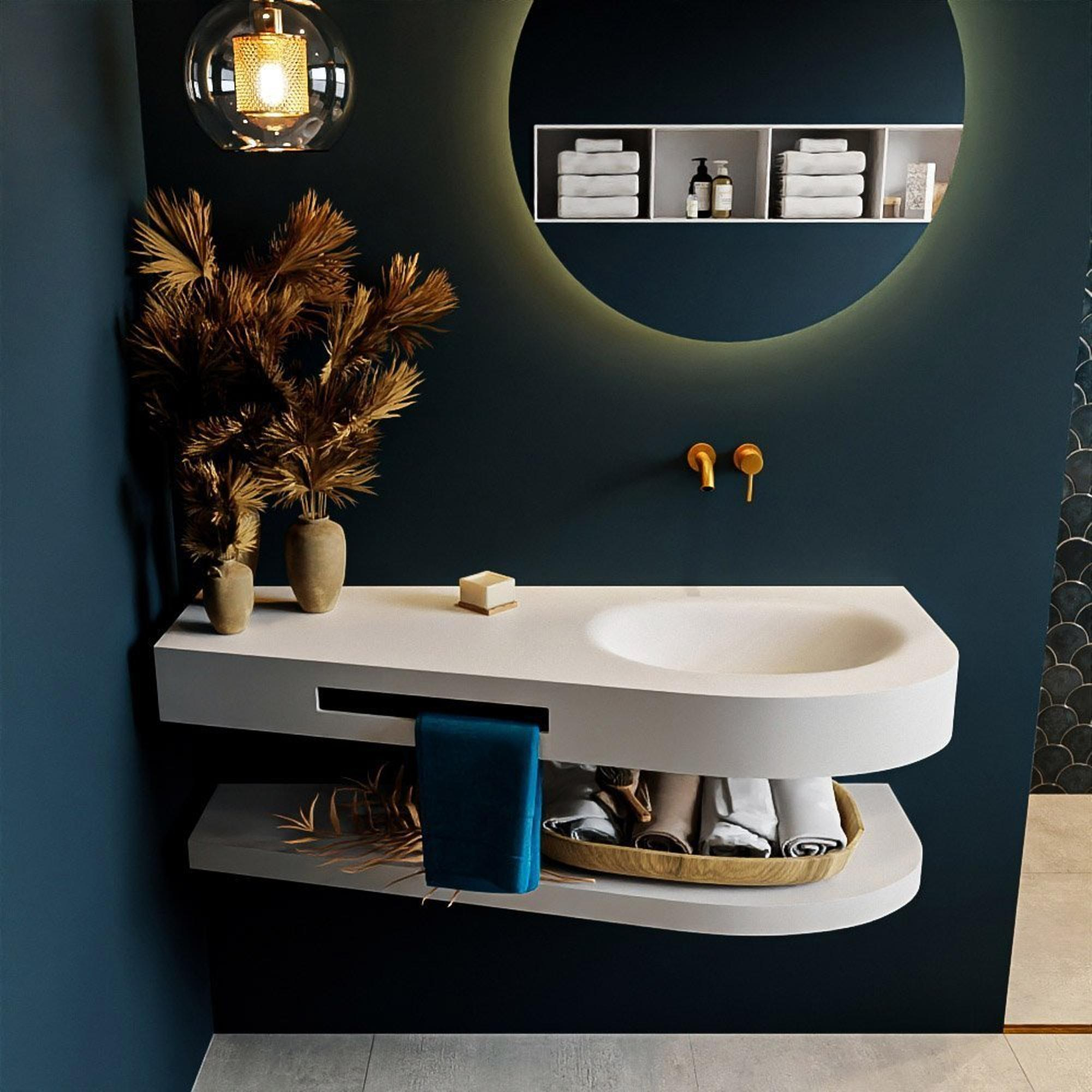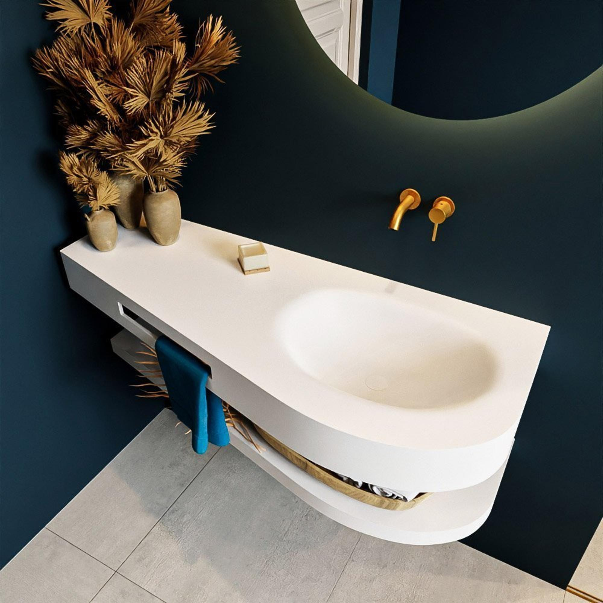 MONDIAZ RIVA Badkamermeubelset - 120x50x5.8cm - 0 lades - Talc mat - 0 kraangaten - wasbak rechts - solid surface talc