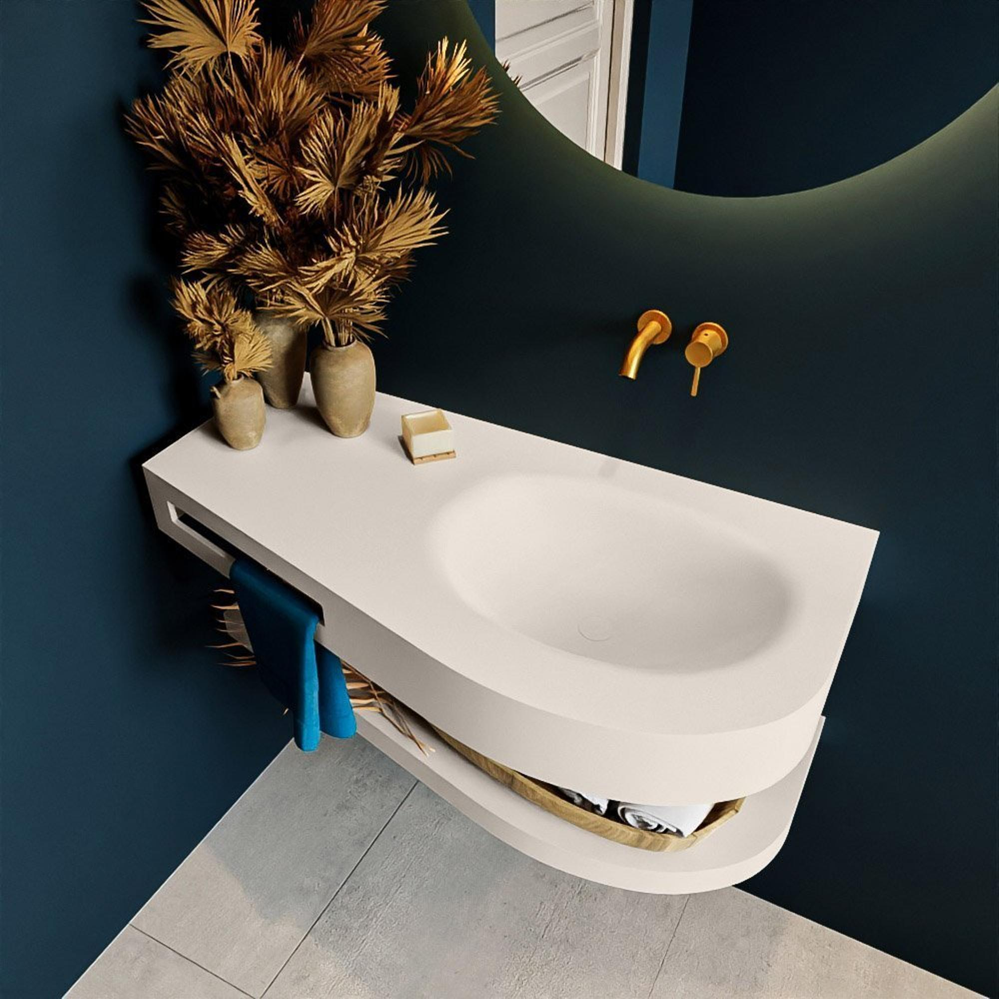 MONDIAZ RIVA Badkamermeubelset - 100x50x5.8cm - 0 lades - Linen mat - 0 kraangaten - wasbak rechts - solid surface linen