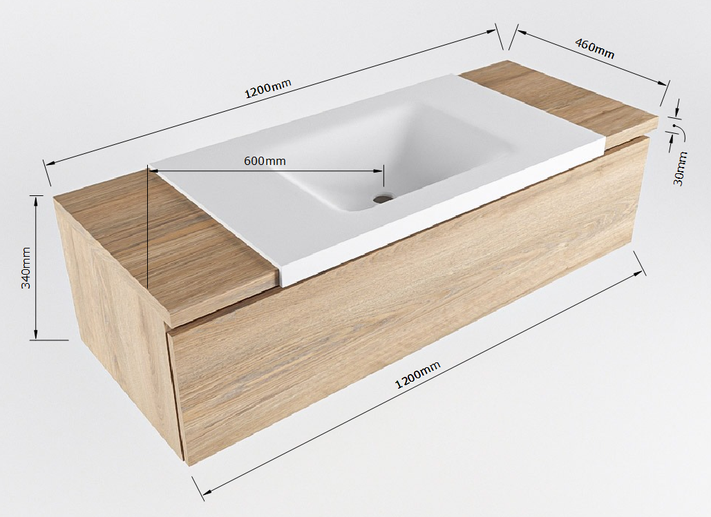 Het badmeubel BUKLA combineert een Solid Surface wastafel met een topblad in 2 houttinten. U heeft zo een mooie scheiding van het natte gedeelte met daar tussen of ernaast een mooie houttint wat veel sfeer en warmte geeft aan de badkamer. Met het BUKLA badkamermeubel kunt u eindeloos veel variaties maken en met al deze mogelijkheden maakt u uw eigen unieke blikvanger.- Kleur onderkast: Washed Oak