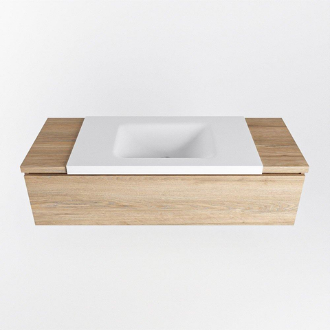Mondiaz BUKLA Badkamermeubelset - 120x45x34cm - 0 kraangaten - wasbak midden - solid surface - Talc - greeploos - 1 lade - Melamine - Washed Oak