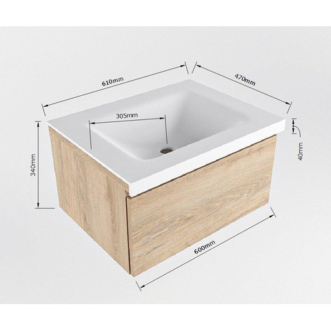 Mondiaz BUKLA Badkamermeubelset - 60x45x34cm - 1 kraangat - wasbak midden - solid surface - Urban - greeploos - 1 lade - Melamine - Washed Oak