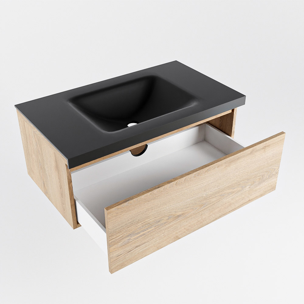 Mondiaz BUKLA Badkamermeubelset - 80x45x34cm - 0 kraangaten - wasbak midden - solid surface - Urban - greeploos - 1 lade - Melamine - Washed Oak