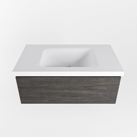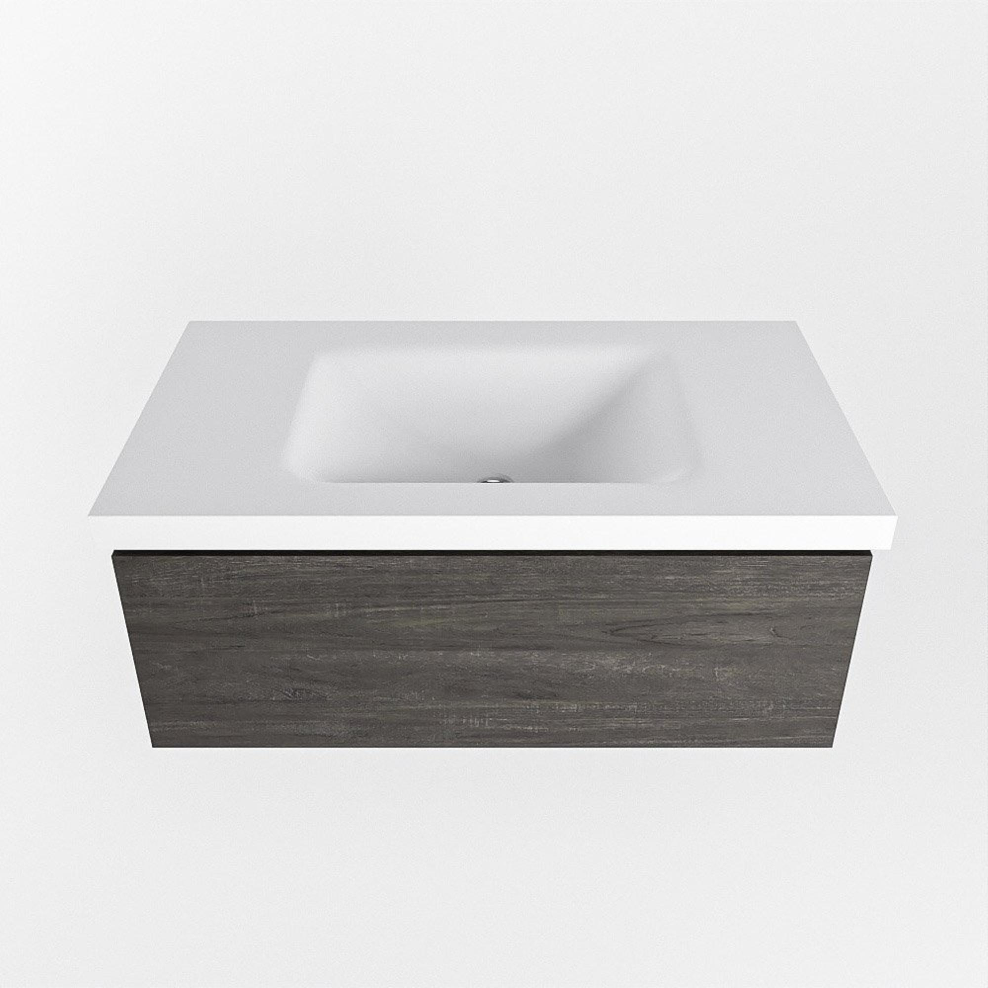 Mondiaz BUKLA Badkamermeubelset - 80x45x34cm - 1 kraangat - wasbak midden - solid surface - Talc - greeploos - 1 lade - Melamine - Dark brown