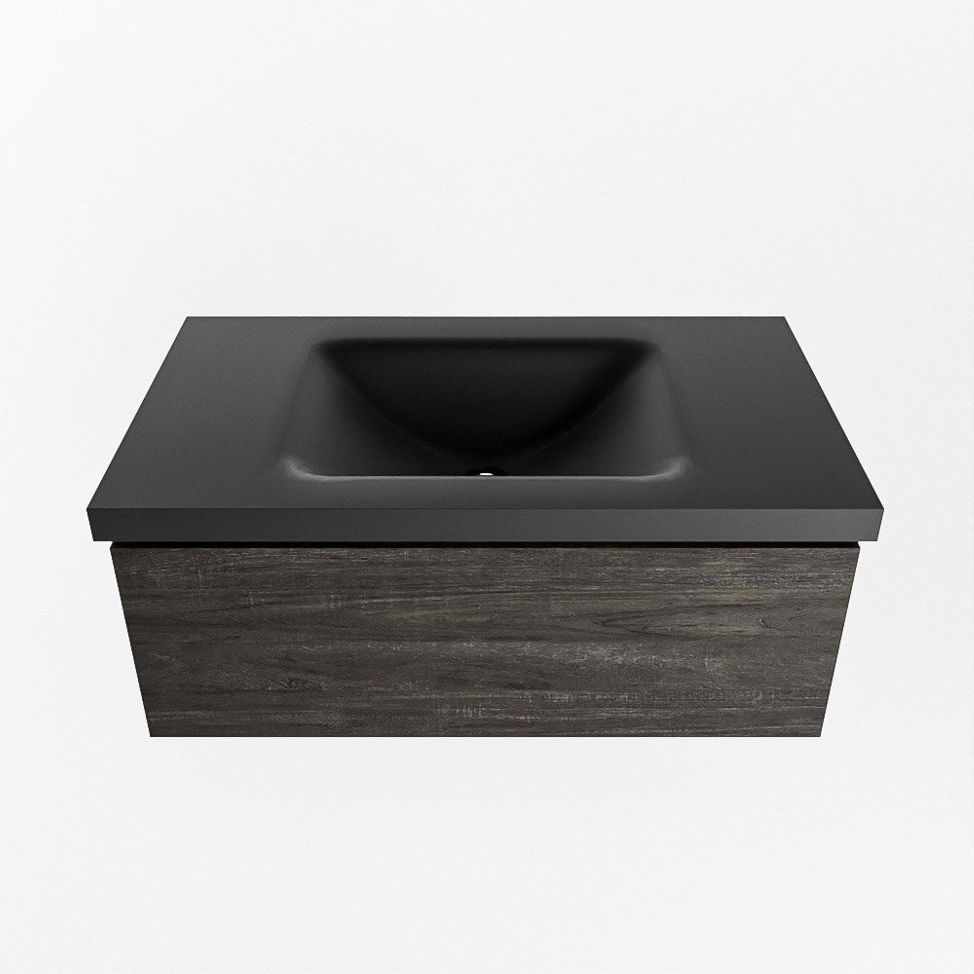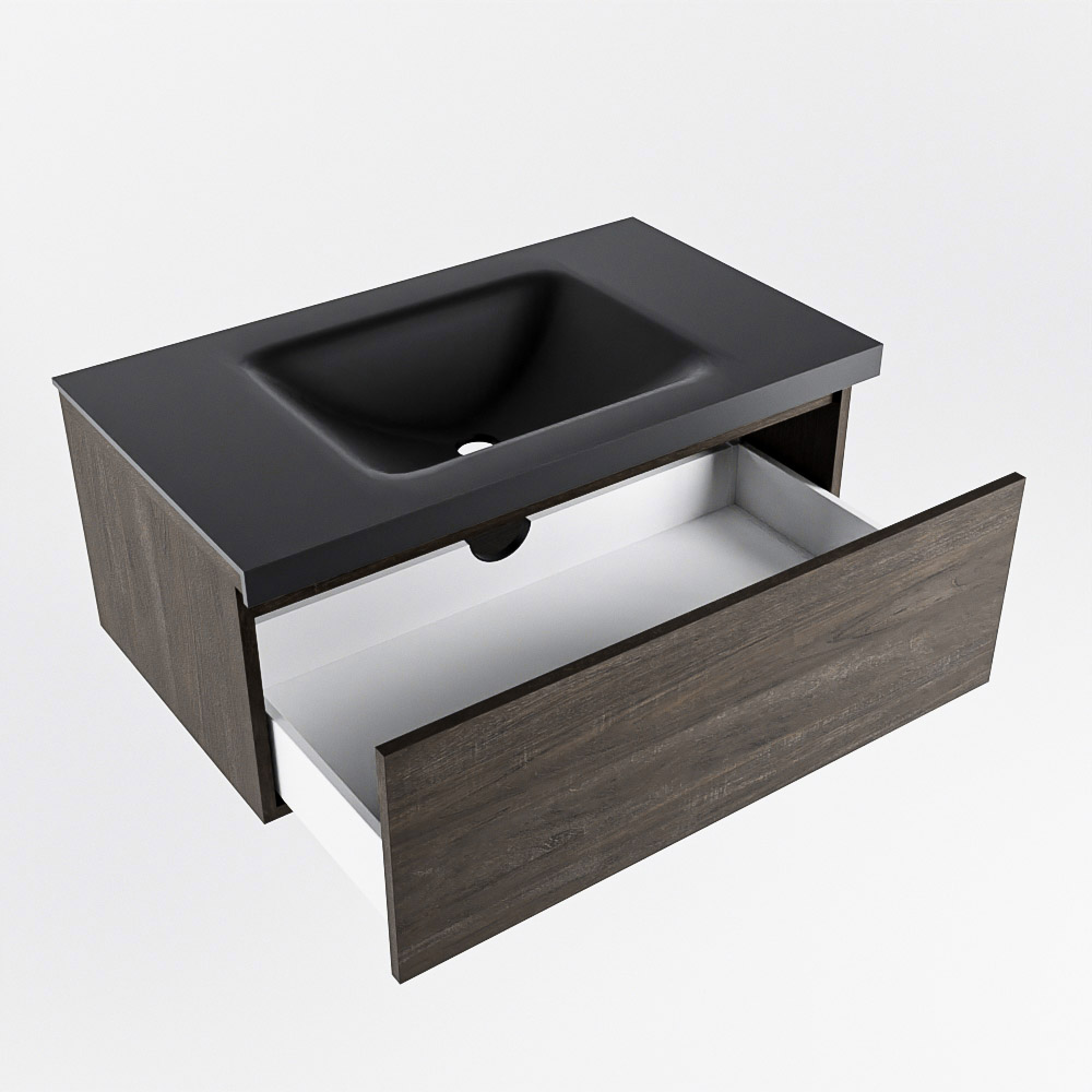 Mondiaz BUKLA Badkamermeubelset - 80x45x34cm - 1 kraangat - wasbak midden - solid surface - Urban - greeploos - 1 lade - Melamine - Dark brown