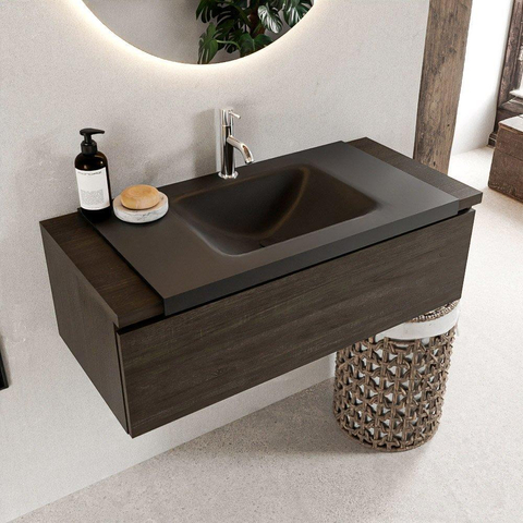 Mondiaz BUKLA badkamermeubelset 100x45x34cm 1 kraangat wasbak midden solid surface Urban greeploos 1 lade met softclose Melamine Dark brown