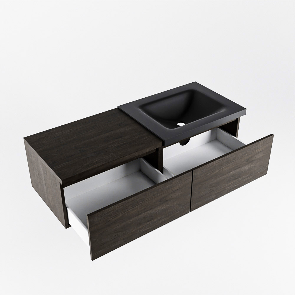 Mondiaz BUKLA badkamermeubelset 120x45x34cm 0 kraangaten wasbak rechts solid surface Urban greeploos 2 lades met softclose Melamine Dark brown