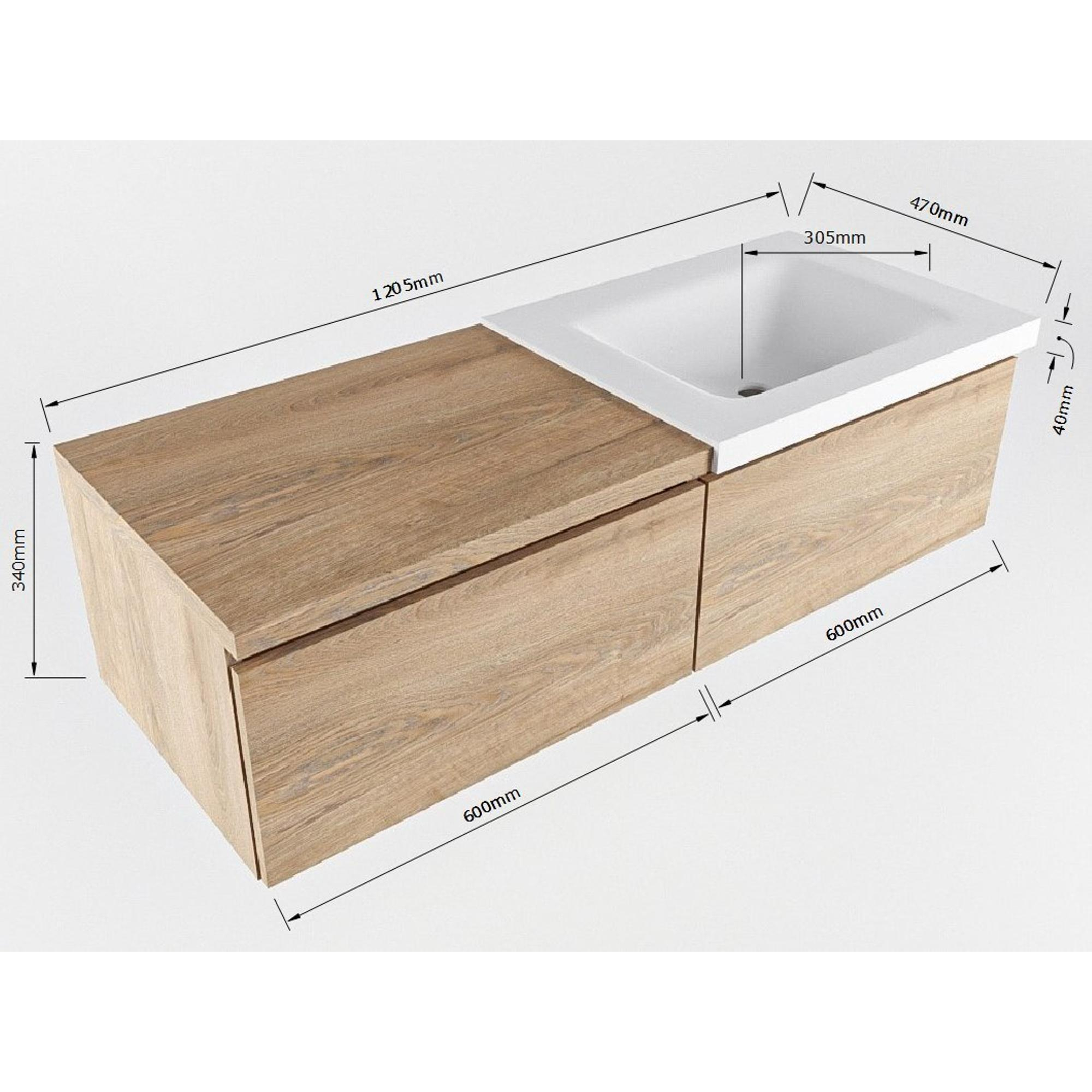 - Diepte wastafel: 46cm