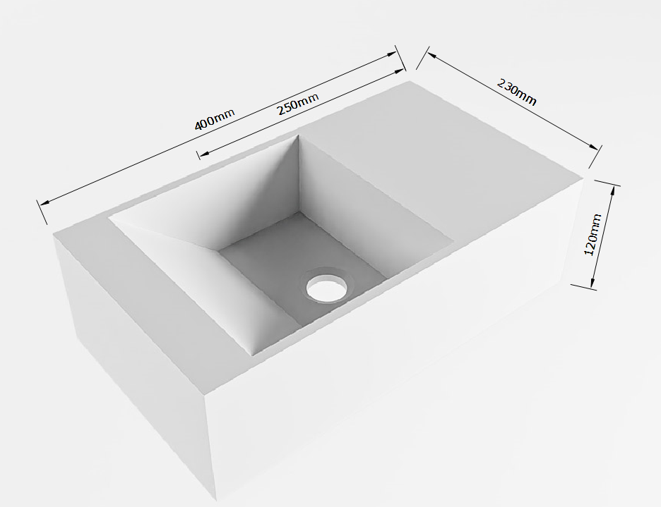 Mondiaz TYNE Fonteinset - 40x23x12cm - wasbak links - 0 kraangaten - solid surface Talc mat