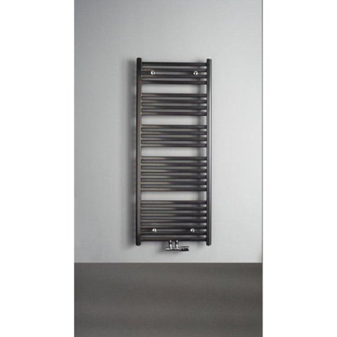 De Calda badkamerradiator is opgebouwd uit twee verticale D-vormige collectorbuizen met daartussen rechte ovale horizontale buizen. Deze radiator is leverbaar in drie hoogtematen, 1200 mm, 1500 mm, 1800 mm en één breedtemaat; 600 mm. Standaard is de radiator voorzien van een 50mm onderaansluiting. Indien de 50mm onderaansluiting niet wordt gebruikt, geeft het onderste element minder warmte af dan de overige elementen. Het ophangmateriaal is van kunststof en wordt samen met de ontluchting meegeleverd. Bij witte radiatoren zijn de consoles ook wit. Bij de antraciet metallic radiatoren zijn de consoles verchroomd. De radiator wordt na een grondige roestwerende voorbehandeling voorzien van een poeder-epoxylaag.