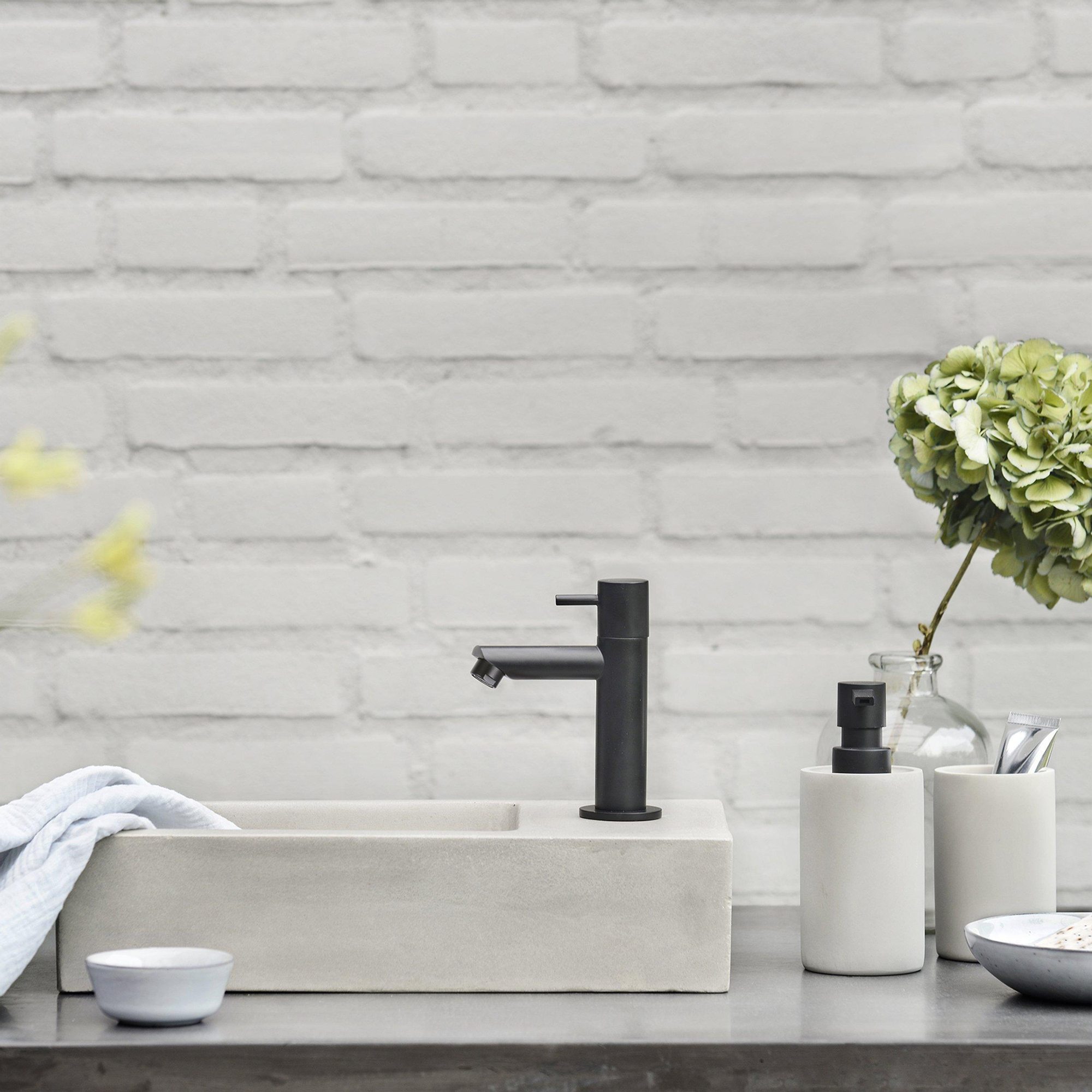 Differnz Ravo fonteinset - 38.5x18.5x9cm - Rechthoek - 1 kraangat - Recht matte zwarte kraan - beton lichtgrijs