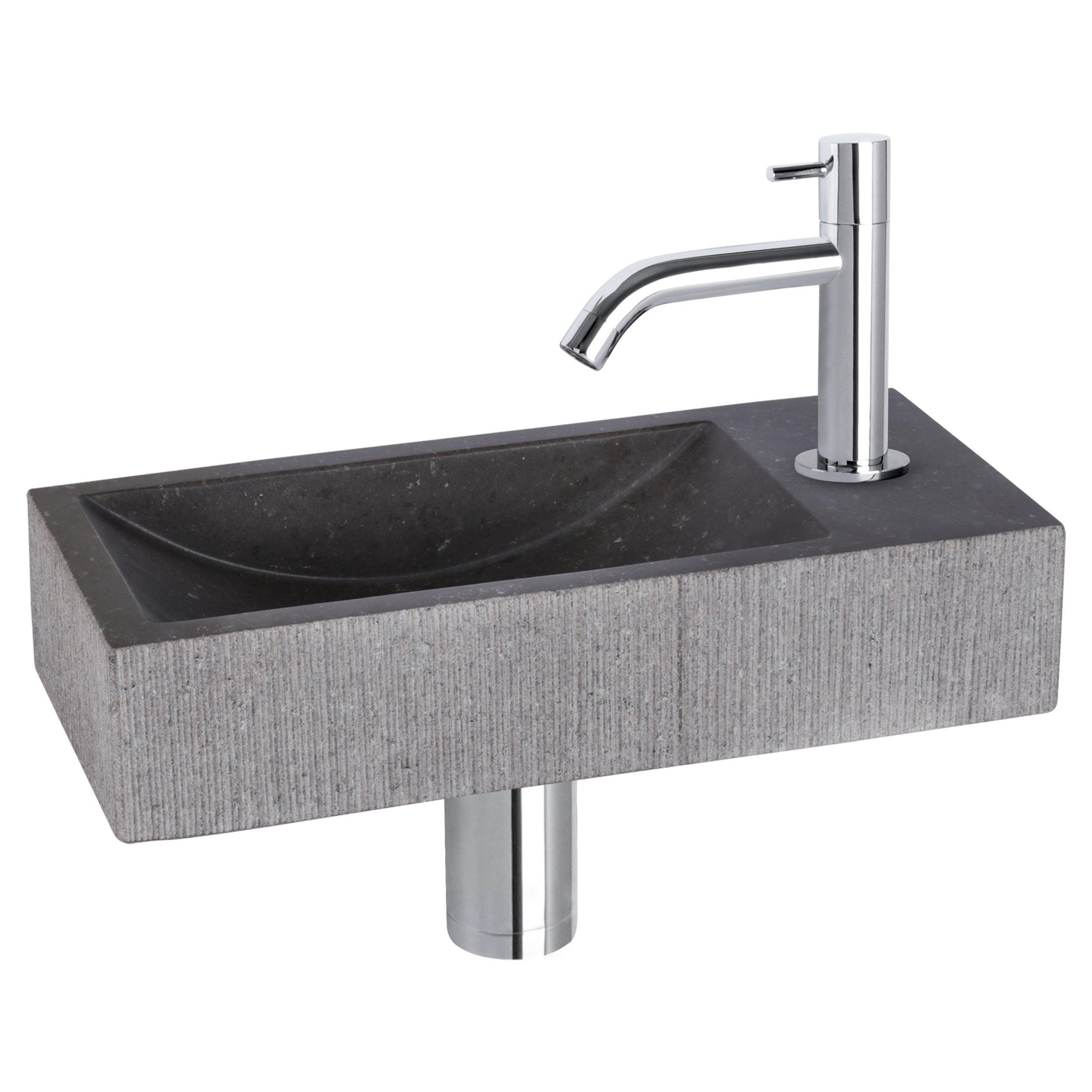 Differnz Ribble fonteinset - 38x18x8cm - Rechthoek - 1 kraangat - gebogen chroom kraan - natuursteen zwart
