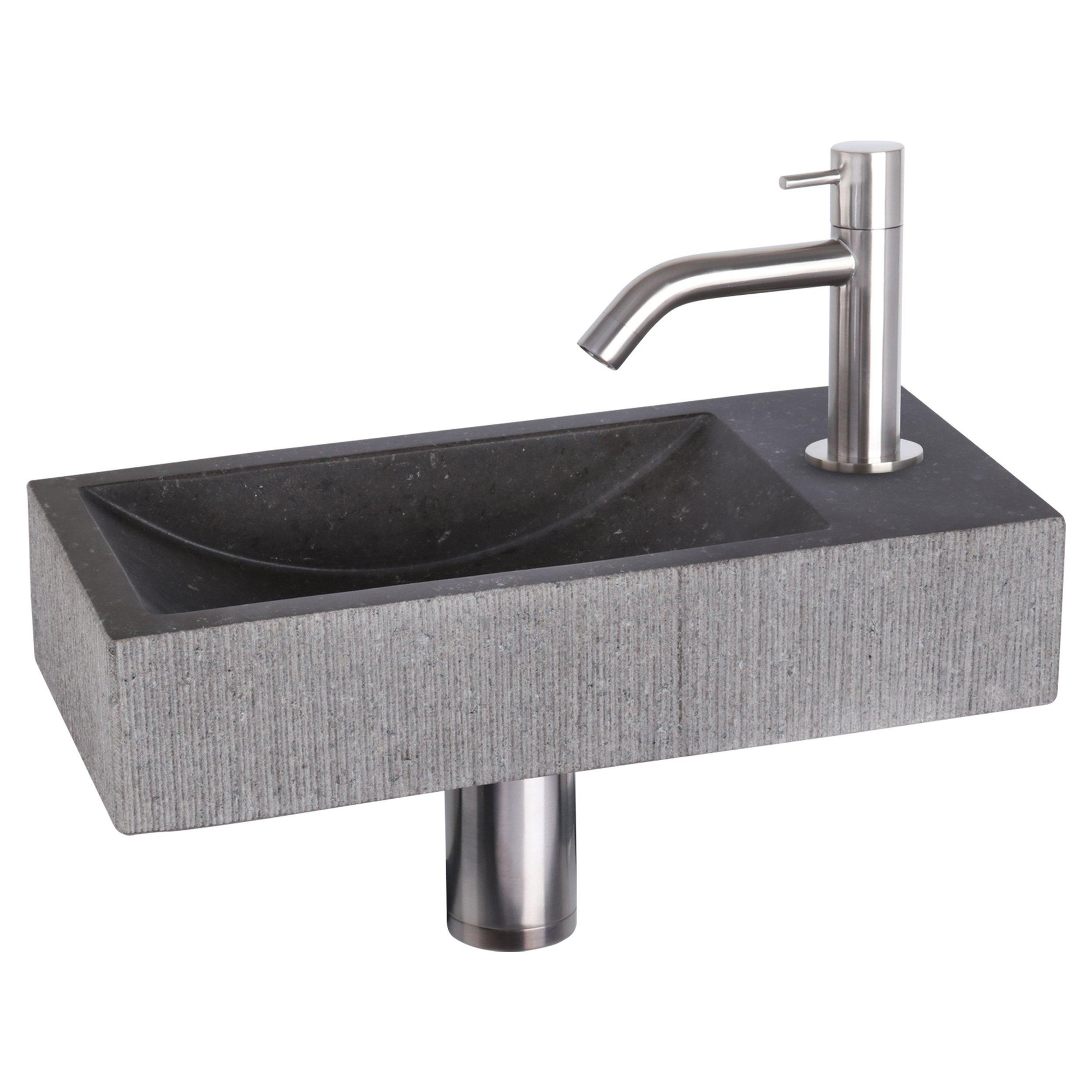Differnz Ribble fonteinset - 38x18x8cm - Rechthoek - 1 kraangat - gebogen chroom matte kraan - natuursteen zwart