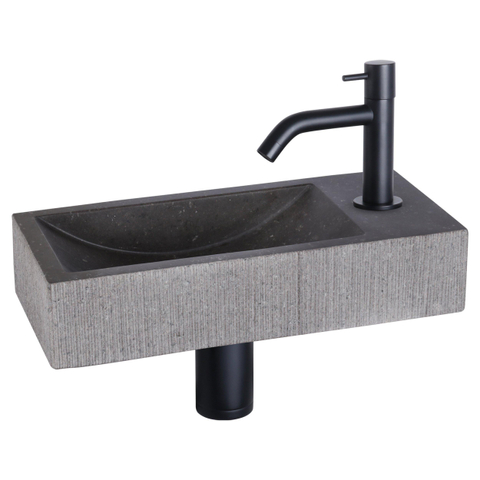 Differnz Ribble fonteinset - 38x18x8cm - Rechthoek - 1 kraangat - gebogen zwart matte kraan - natuursteen zwart