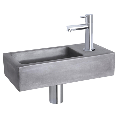 Differnz Ravo fonteinset - 38.5x18.5x9cm - Rechthoek - 1 kraangat - Recht chromen kraan - beton donkergrijs