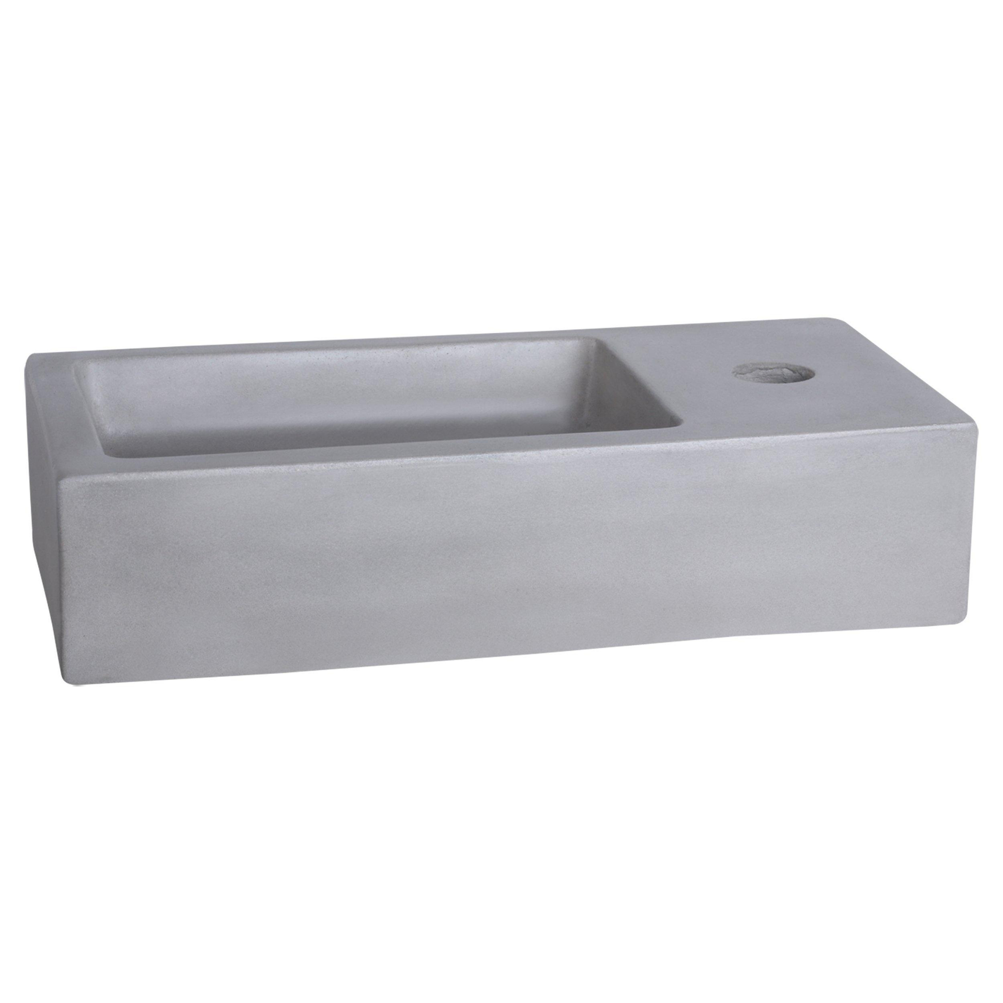 Differnz Ravo fonteinset - 38.5x18.5x9cm - Rechthoek - 1 kraangat - Gebogen koperen kraan - kruisgreep - Beton Grijs