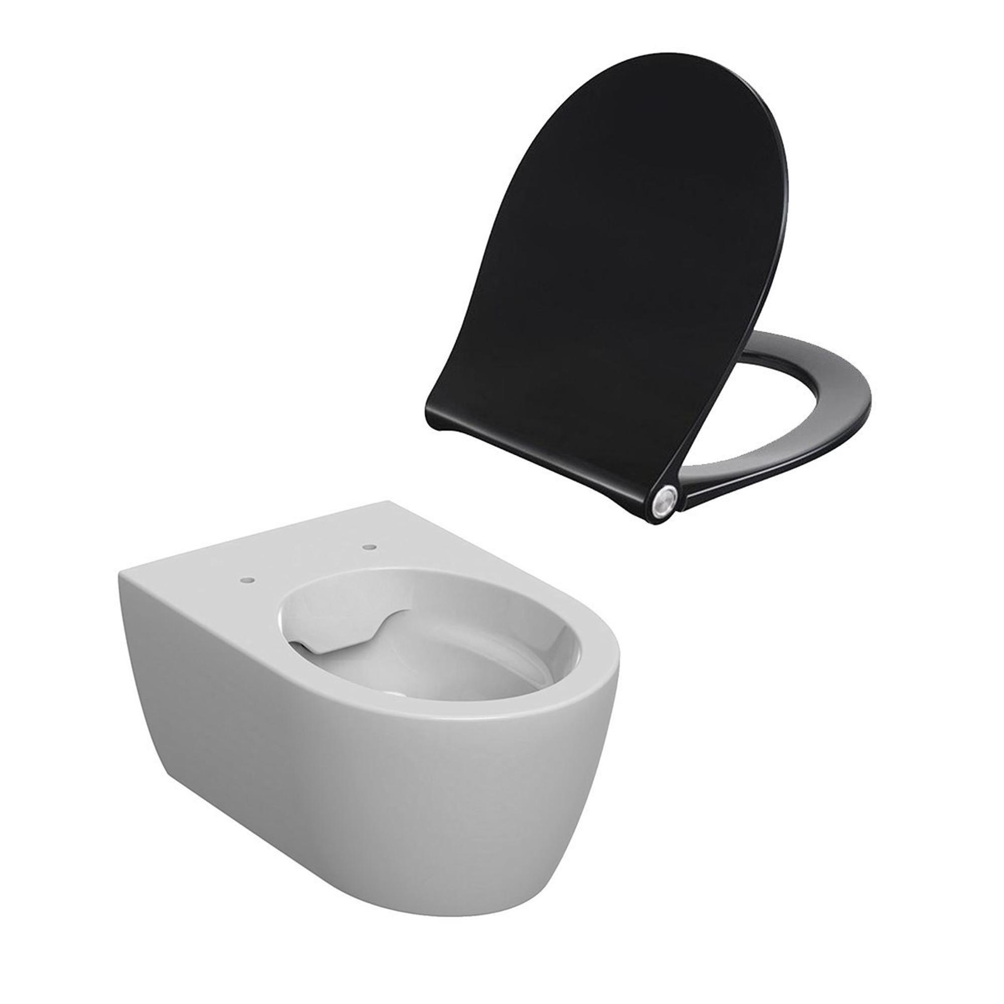 Geberit Icon wandcloset 35.5x53x33cm Diepspoel spoelrandloos wit met softclose en quickrelease zitting zwart