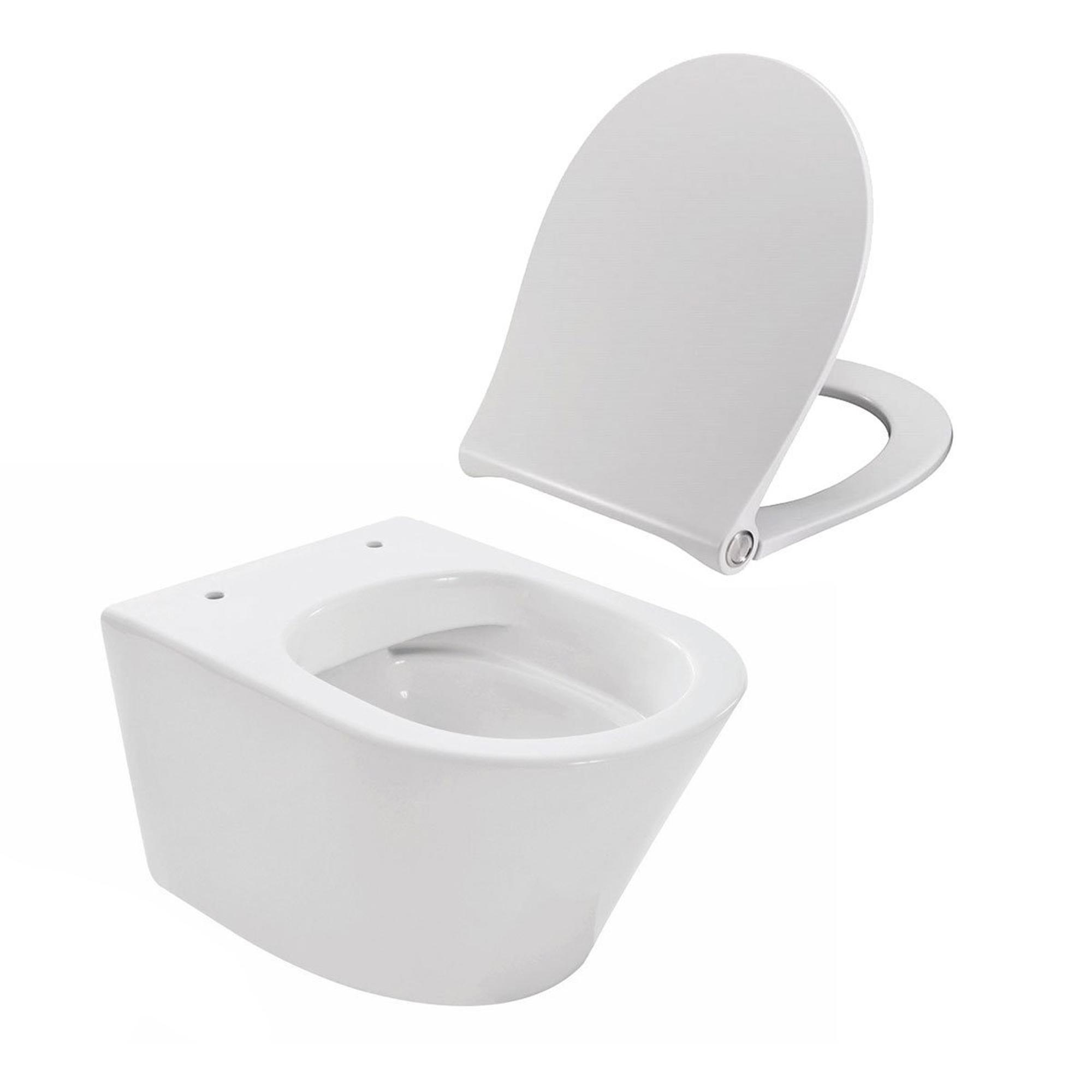 Wiesbaden Vesta compact spoelrandloos wandcloset 47cm met softclose en quickrelease zitting wit