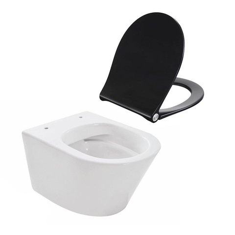 Wiesbaden Vesta compact spoelrandloos wandcloset 47cm wit met softclose en quickrelease zitting zwart