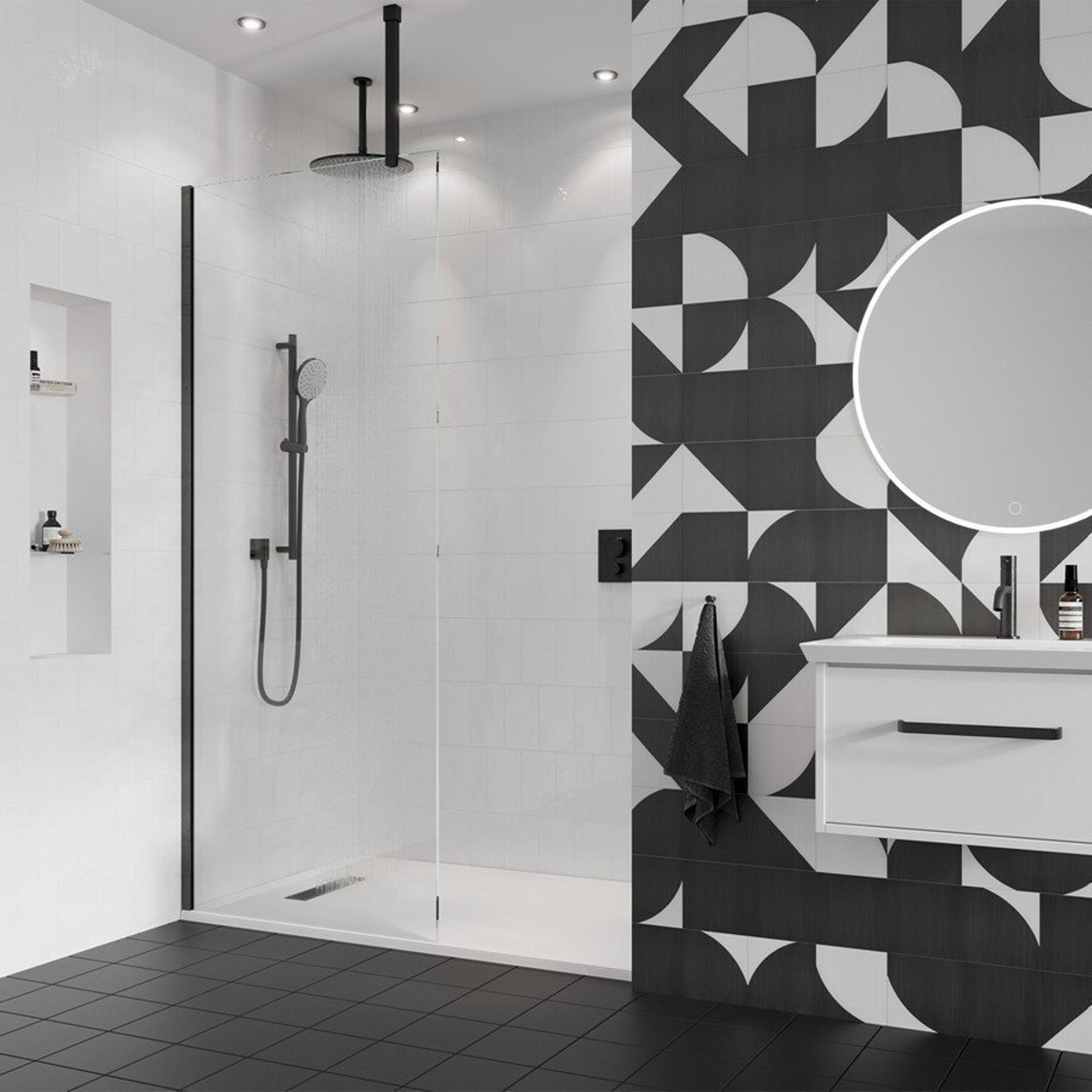 Deze inloopdouche is ontworpen met een moderne esthetiek in gedachten. De strakke lijnen en minimalistische uitstraling creëren een eigentijdse look die perfect is voor een moderne badkamer. Het 10mm dikke veiligheidsglas zorgt niet alleen voor duurzaamheid, maar geeft ook een gevoel van ruimte en openheid aan de douche.