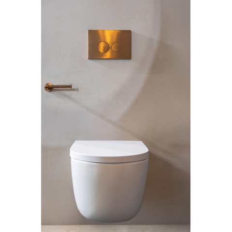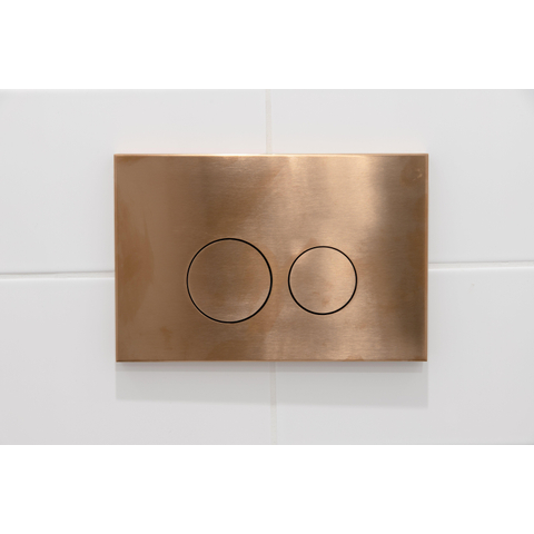 De QeramiQ Push Metal Bedieningsplaat straalt stijl en elegantie uit met zijn metalen koperen afwerking en ronde knoppen. Het ontwerp is tijdloos en past perfect bij moderne badkamers. De subtiele glans van het metaal voegt een vleugje luxe toe aan de ruimte, terwijl de ergonomisch ontworpen knoppen zorgen voor een comfortabele bediening. Deze bedieningsplaat is niet alleen functioneel, maar ook een decoratief element dat je badkamer naar een hoger niveau tilt.