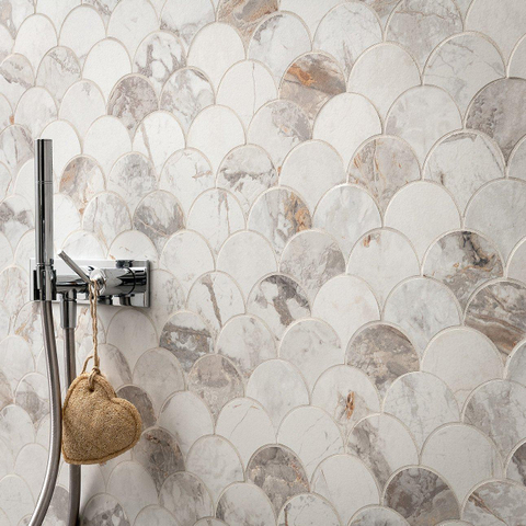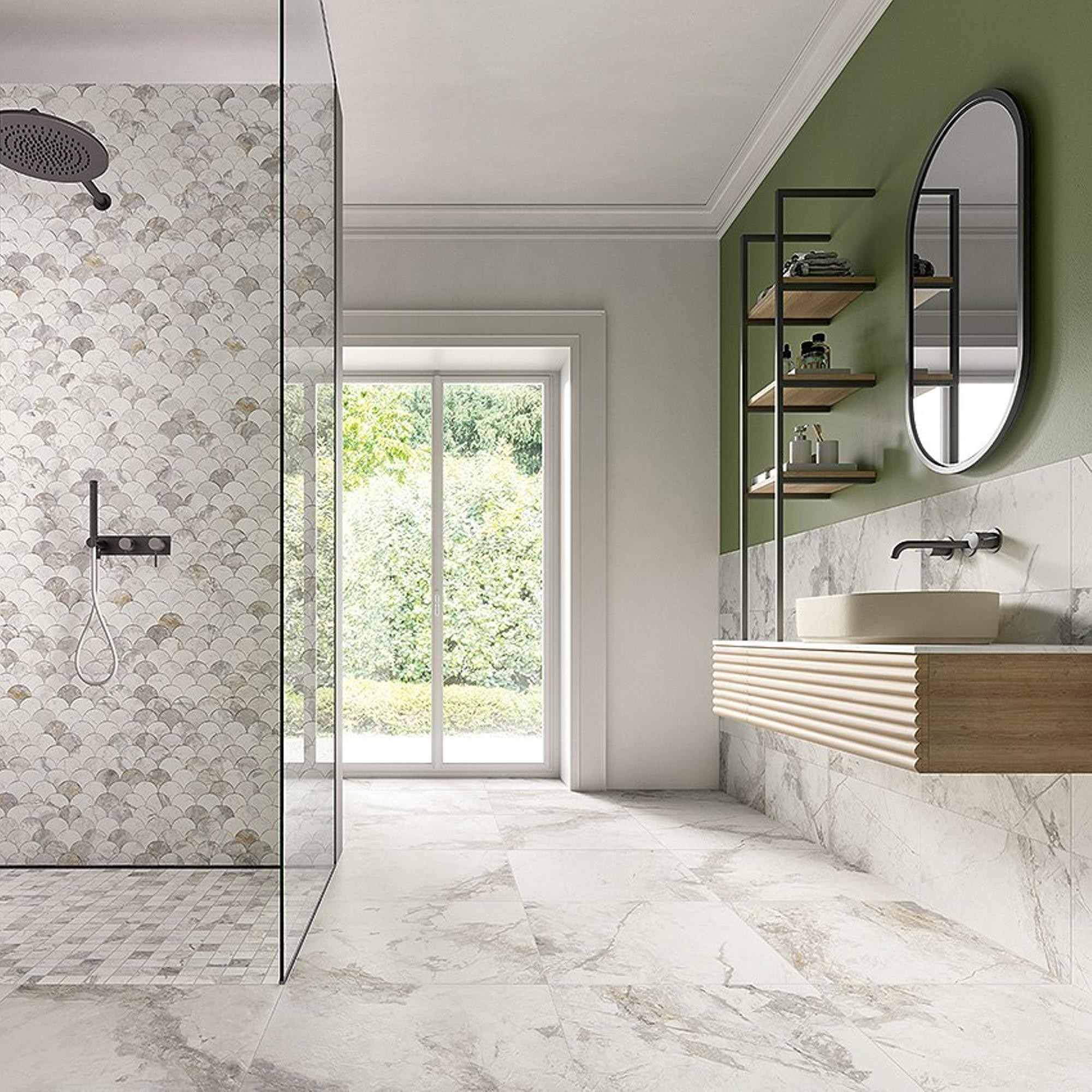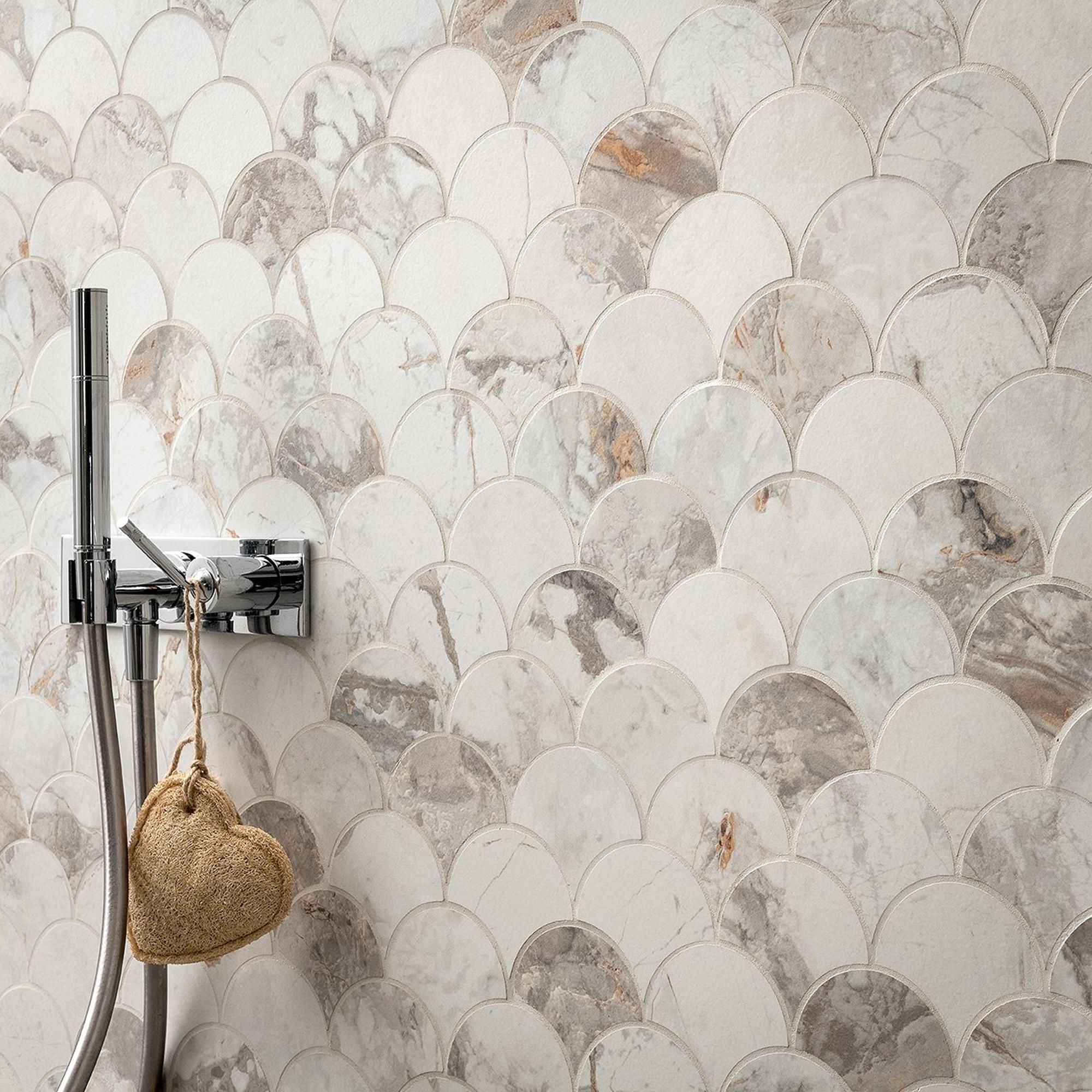 Edimax Astor Golden Age wandtegel - 30x30cm - 10mm - Visschub - Marmerlook - Wit mat