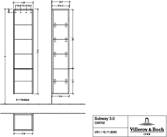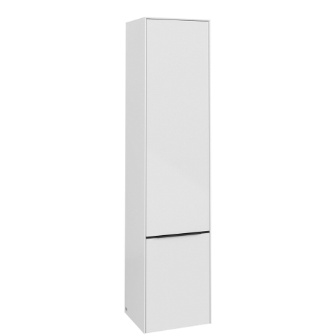 Villeroy & Boch Subway 3.0 badkamerkast 40x35x170cm met 2 rechtsdraaiende softclose deuren opbouw met Volcano Black greep spaanplaat Brilliant white