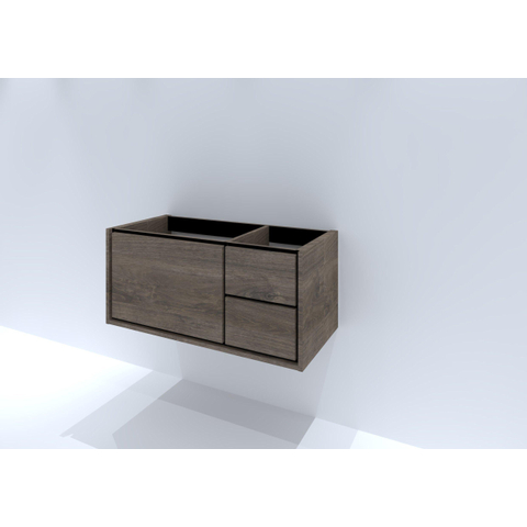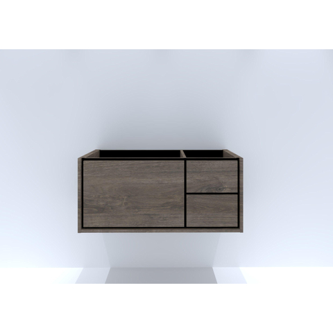 HR Badmeubelen Rize wastafelkast - 1 hoge lade links (65cm)/2 laden rechts (35cm) - greeploos push2open - 100 x 45 x 45 cm - espresso