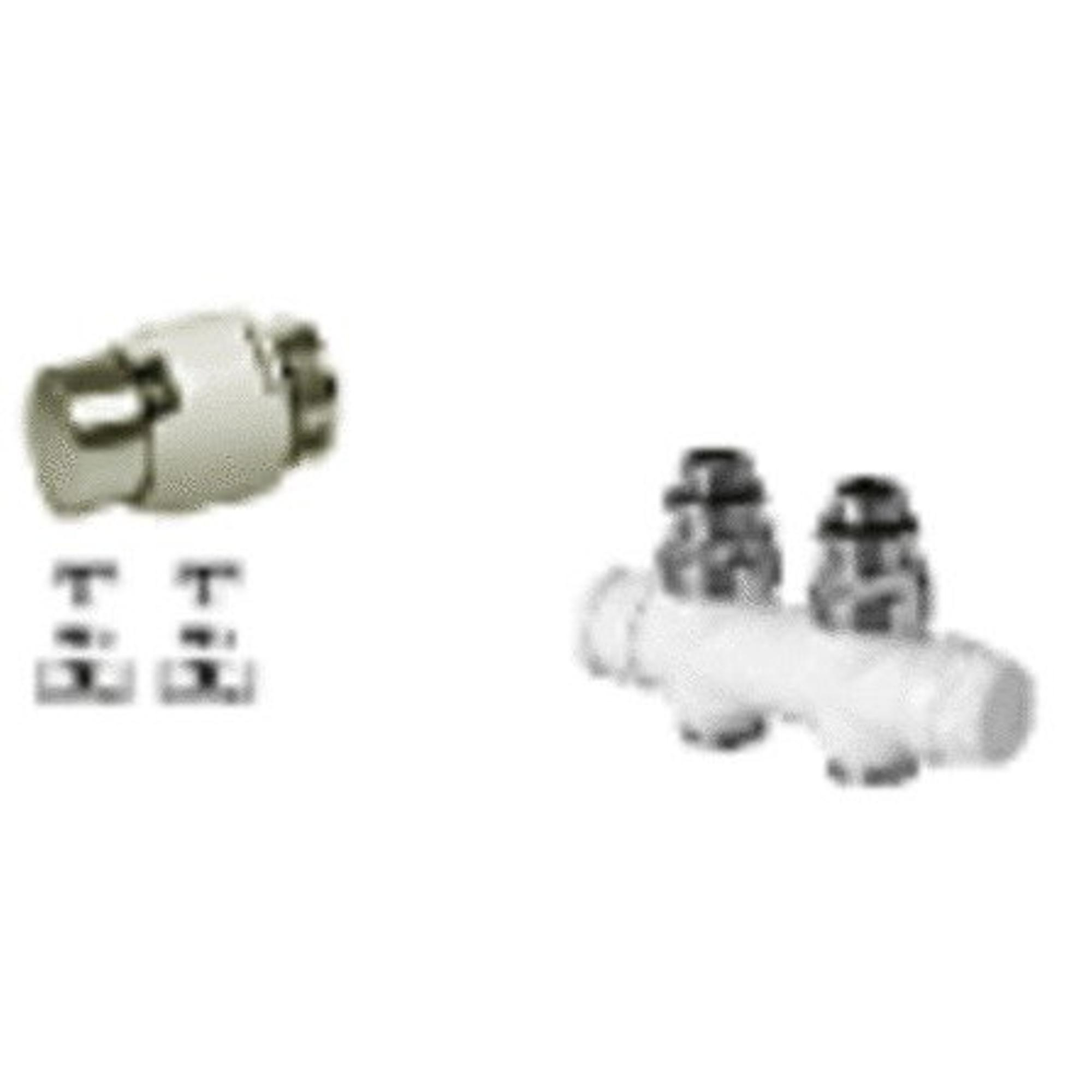 ---------- Honeywell Therafix Design. Aansluitkit 1/2" voor verticale sierradiatoren met middenaansluiting - voor vloeraansluiting - wit - bestaande uit een radiatorthermostaat Design wit T4021 (T200M262), een recht H-blok Therafix Design wit, en een koppelingset 16 x 2 mm voor PEX Alu buis.