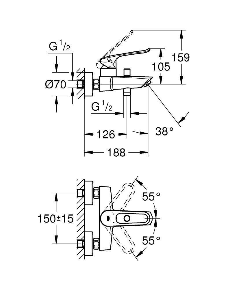 GROHE Eurosmart opbouw badmengkraan chroom