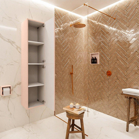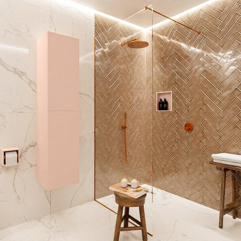 Wat de MONDIAZ BEAM Kolomkast echt onderscheidt, is zijn elegante uitstraling. De subtiele roze kleur voegt een vleugje verfijning toe aan de badkamer en creëert een sfeer van luxe en comfort. Het slanke ontwerp en de vloeiende lijnen van de kast geven een gevoel van harmonie en balans, waardoor het een blikvanger wordt die de ruimte transformeert tot een oase van rust en schoonheid.