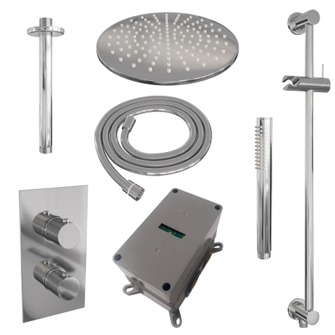 Brauer Chrome Carving Regendoucheset inbouw - hoofddouche 30 cm - 2 functies - glijstang - inclusief inbouwdeel - handdouche Staaf 1 stand - chroom