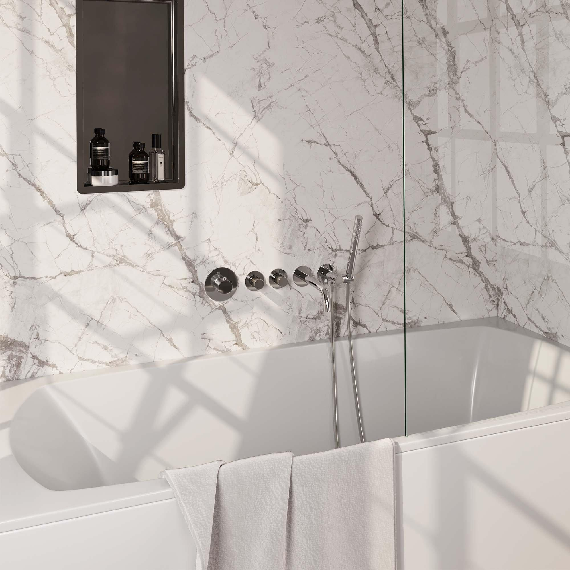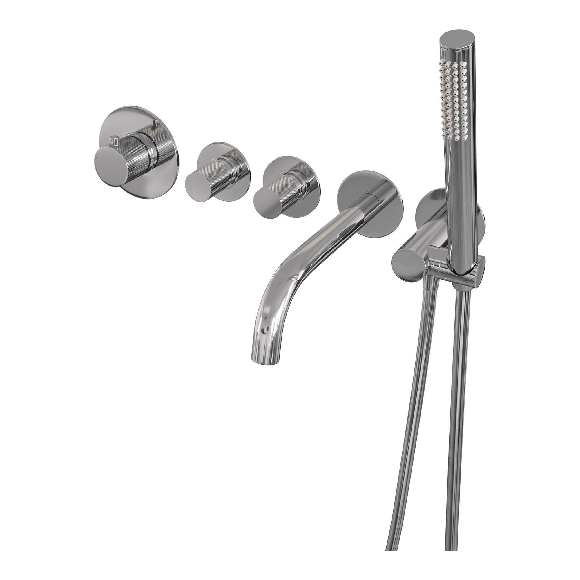 Brauer Chrome Carving Badkraan Inbouw - douchegarnituur - 20cm uitloop - inbouwdeel - 3 carving knoppen - handdouche staaf 1 stand - chroom