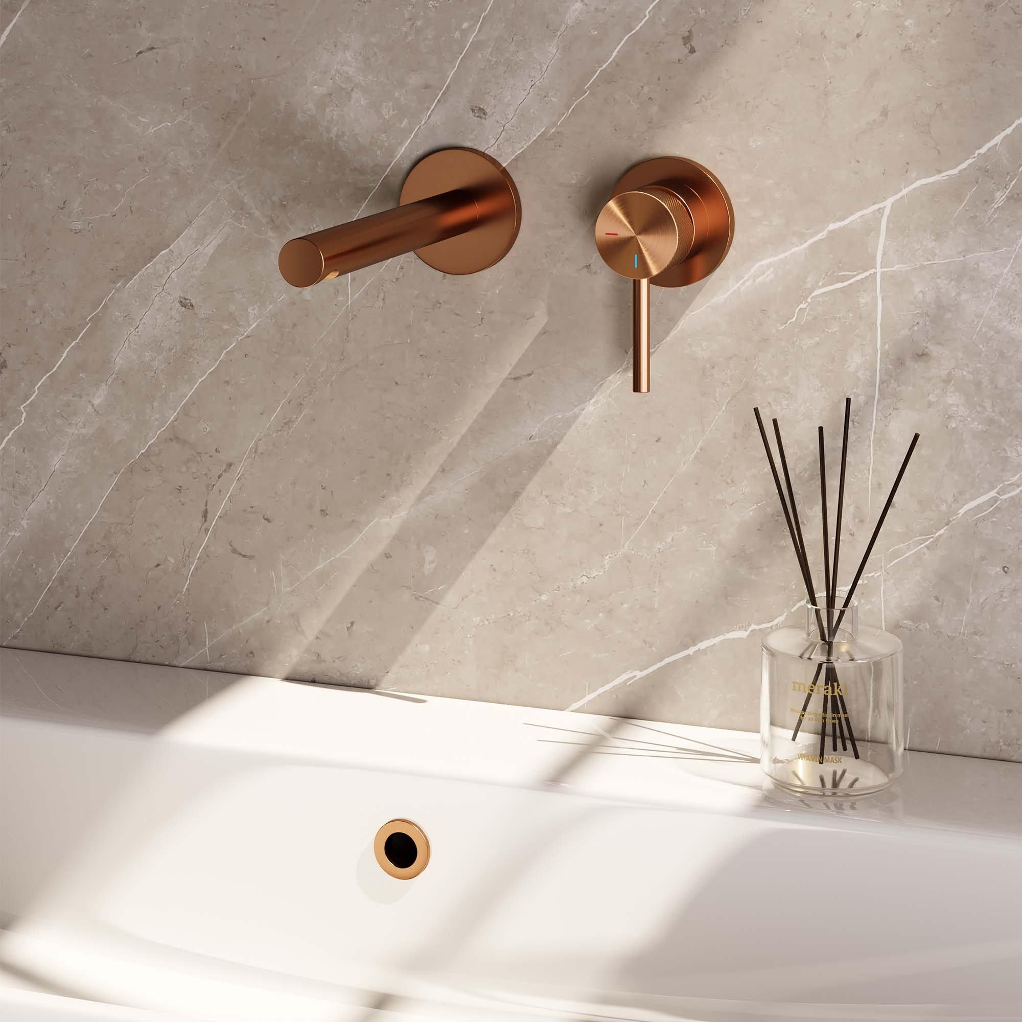 De Brauer Copper Carving Wastafelmengkraan inbouw is een prachtig vormgegeven kraan die elke badkamer een luxe uitstraling geeft. Met zijn rechte uitloop aan de linkerkant, lange smalle hendel en geborsteld koperen afwerking is dit een stijlvolle toevoeging aan jouw badkamerinterieur. Het Carving-model A 1 voegt een uniek element toe aan de kraan, waardoor deze een echte blikvanger wordt.