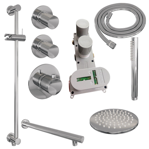 Brauer Chrome Carving Regendoucheset inbouw - hoofddouche 20cm - 3 carving knoppen - rechte wandarm - glijstang - handdouche staaf 1 stand - chroom