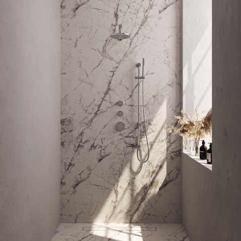 De Brauer Chrome Carving Regendoucheset straalt luxe uit in elke badkamer. De chroomafwerking geeft een glanzende uitstraling die moeiteloos past bij verschillende interieurstijlen. De hoofddouche van 20 cm zorgt voor een gelijkmatige waterverdeling, terwijl de 3 carving knoppen een geavanceerde controle bieden over de watertemperatuur en -druk. Deze set is een symbool van verfijning en comfort, waardoor douchen een plezierige ervaring wordt.