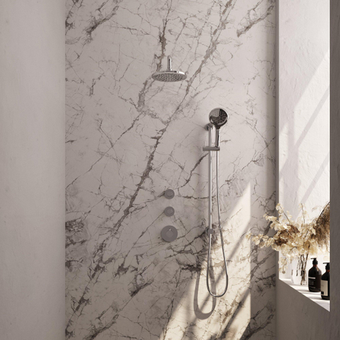 De Brauer Chrome Carving Regendoucheset inbouw straalt elegantie uit in elke badkamer. De chroomafwerking geeft een glanzende, luxe uitstraling aan het geheel. De strakke lijnen en moderne vormgeving zorgen voor een tijdloos design dat perfect past bij verschillende interieurstijlen. Laat je badkamer schitteren met deze elegante regendoucheset.