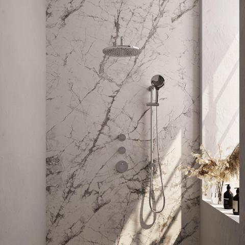 De Brauer Chrome Carving Regendoucheset inbouw onderscheidt zich door zijn stijlvolle ontwerp en hoogwaardige materialen. De chroomafwerking zorgt voor een glanzende uitstraling die perfect past bij moderne en klassieke badkamers. De Carving knoppen voegen een uniek en elegant detail toe aan de set, waardoor het een blikvanger wordt in de ruimte.