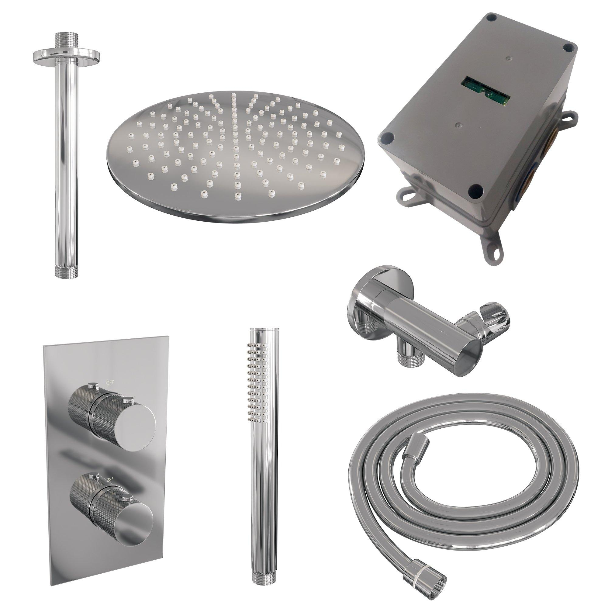 Brauer Chrome Carving Regendoucheset inbouw - hoofddouche 30 cm - 2 functies - inclusief inbouwdeel - handdouche Staaf 1 stand - chroom SW715627