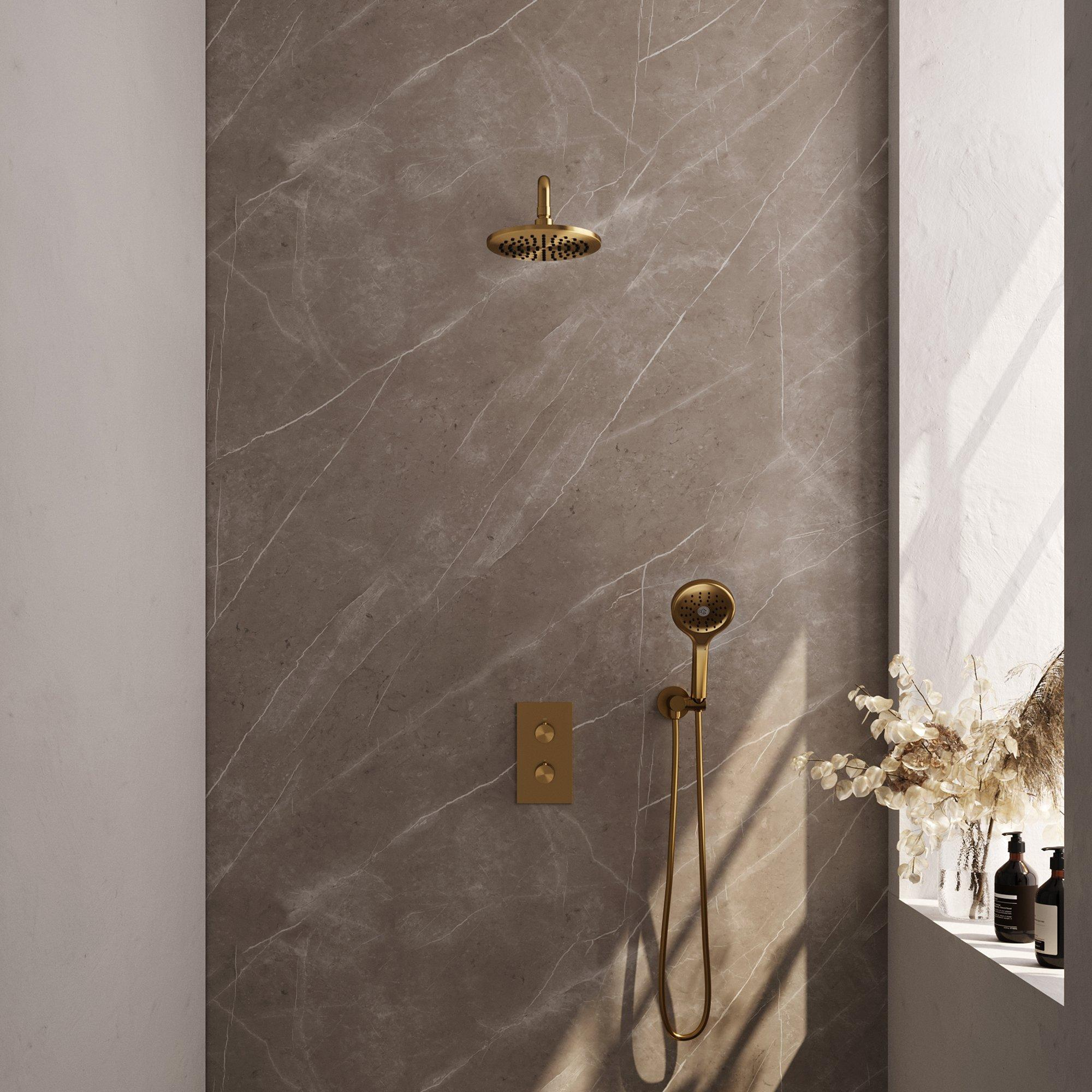 Brauer Gold Carving Regendoucheset inbouw - hoofddouche 20cm - Carving knop - handdouche rond 3 standen - PVD - geborsteld goud -
