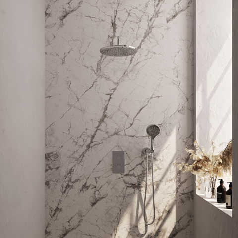 Brauer Chrome Carving Regendoucheset inbouw - hoofddouche 30cm - Carving knop - handdouche rond 3 standen - chroom SW715649